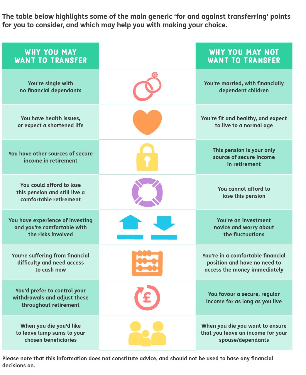 • advise you as to whether or not taking a transfer would be right for you